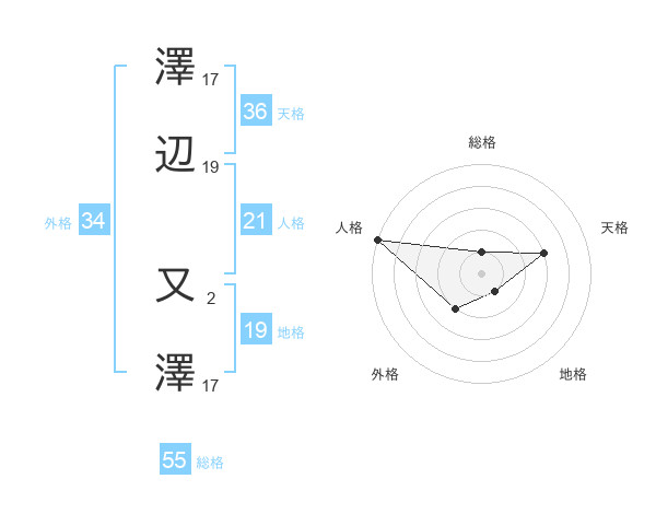 澤辺 又澤さんを姓名の画数から五運を鑑定