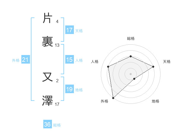 片裏 又澤さんの外格は21画の5点!