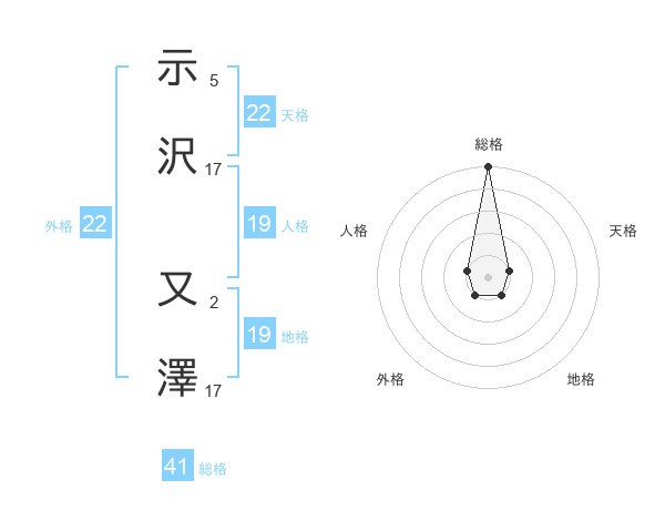 示沢 又澤さんの天格は22画の1点!