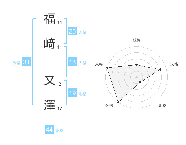 福﨑 又澤さんを姓名の画数から五運を鑑定