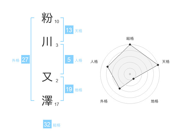 粉川 又澤さんを姓名の画数から五運を鑑定