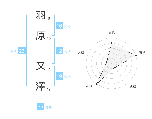 羽原 又澤さんの総格は35画の4点!
