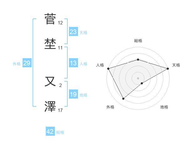 菅埜 又澤さんの天格は23画の5点!