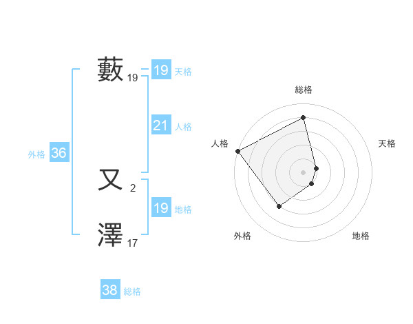 藪 又澤さんの天格は19画の1点!