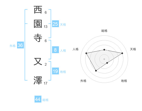 西園寺 又澤さんを姓名の画数から五運を鑑定