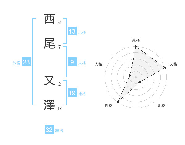 西尾 又澤さんを姓名の画数から五運を鑑定
