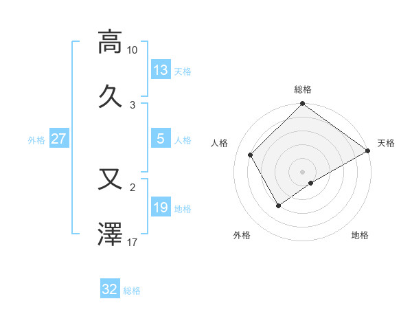 高久 又澤さんの総格は32画の5点!