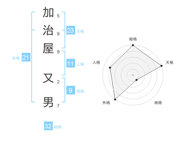 加治屋 又男さんの天格は23画の5点!