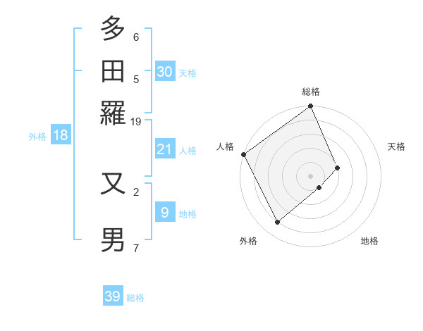 多田羅 又男さんを姓名の画数から五運を鑑定