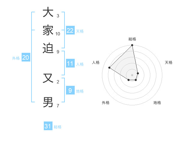 大家迫 又男さんを姓名の画数から五運を鑑定