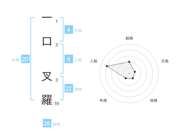 一口 叉羅さんを姓名の画数から五運を鑑定