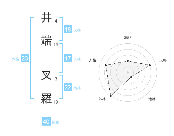 井端 叉羅さんの天格は18画の4点!