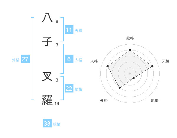 八子 叉羅さんを姓名の画数から五運を鑑定
