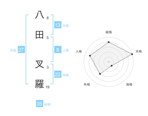 八田 叉羅さんの天格は13画の5点!