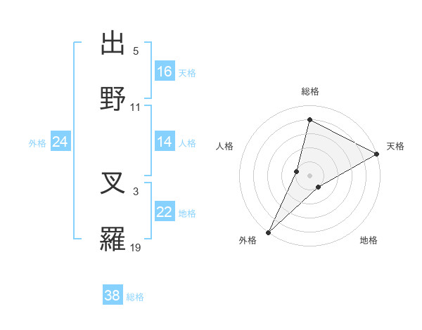 出野 叉羅さんの総格は38画の4点!