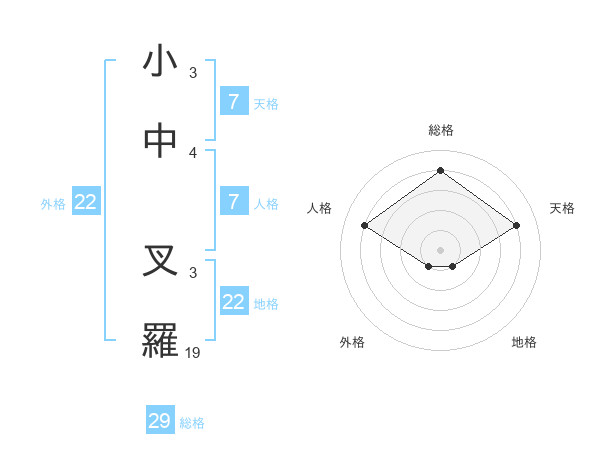 小中 叉羅さんの外格は22画の1点!
