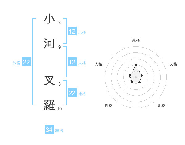 小河 叉羅さんの外格は22画の1点!