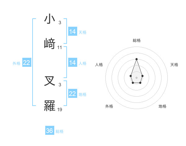 小﨑 叉羅さんの地格は22画の1点!