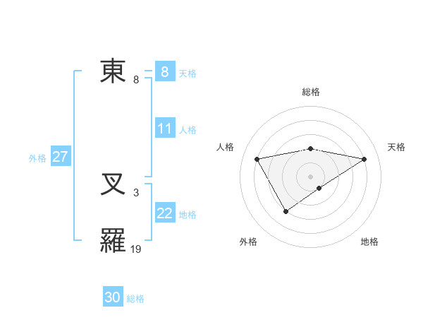 東 叉羅さんの総格は30画の2点!