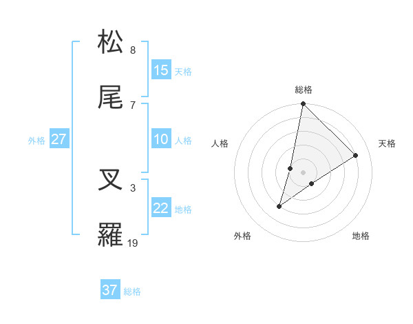 松尾 叉羅さんを姓名の画数から五運を鑑定