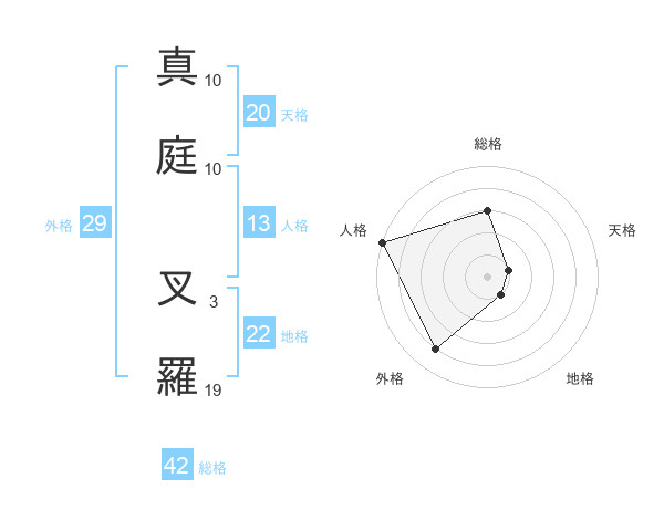 真庭 叉羅さんの天格は20画の1点!