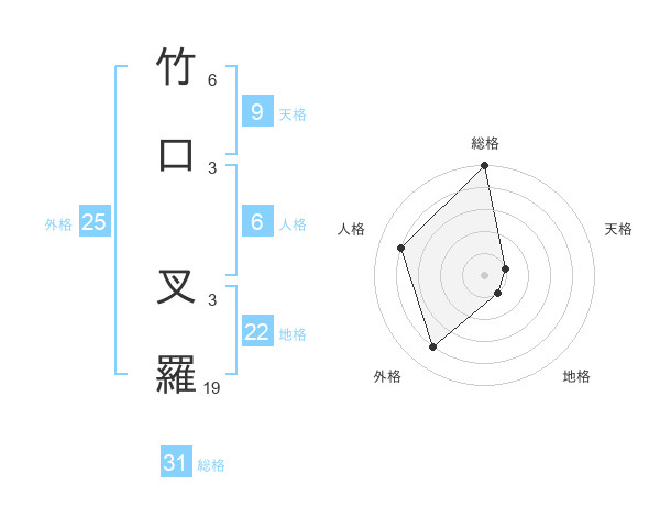 竹口 叉羅さんを姓名の画数から五運を鑑定