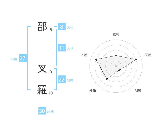 邵 叉羅さんの総格は30画の2点!