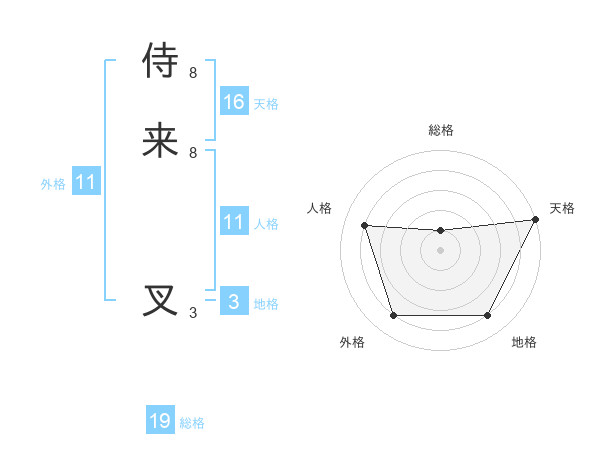 侍来 叉さんの天格は16画の5点!