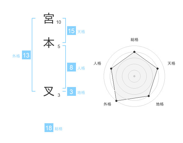 宮本 叉さんの外格は13画の5点!