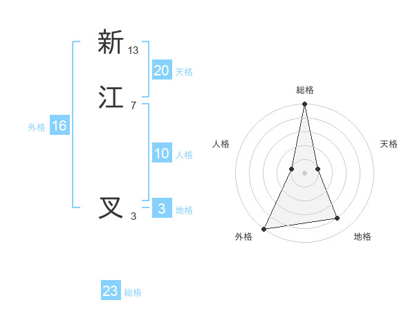 新江 叉さんの総格は23画の5点!