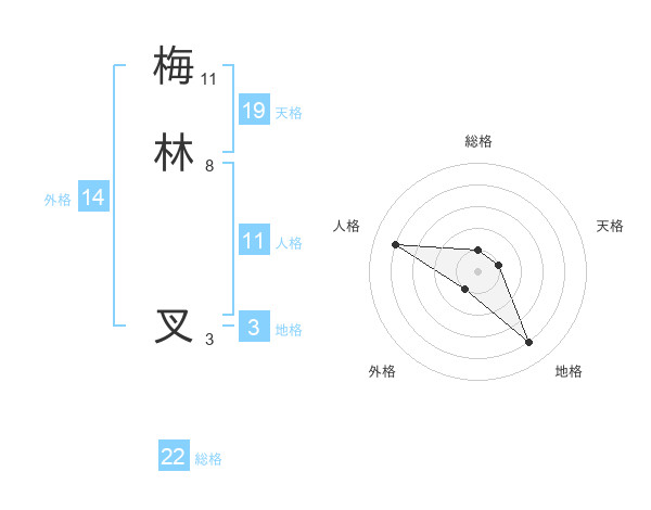 梅林 叉さんの総格は22画の1点!