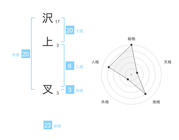 沢上 叉さんの総格は23画の5点!
