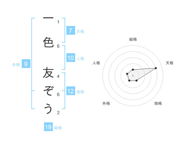 一色 友ぞうさんの総格は19画の1点!