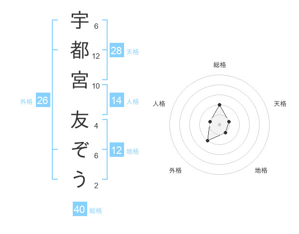 宇都宮 友ぞうさんの総格は40画の2点