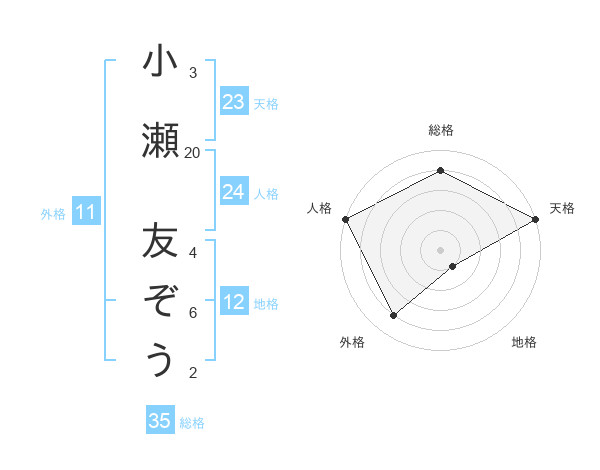 小瀬 友ぞうさんを姓名の画数から五運を鑑定