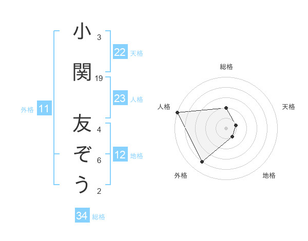 小関 友ぞうさんを姓名の画数から五運を鑑定
