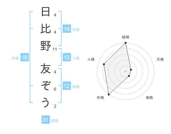 日比野 友ぞうさんを姓名の画数から五運を鑑定