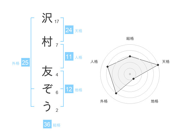 沢村 友ぞうさんを姓名の画数から五運を鑑定