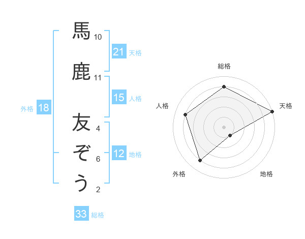 馬鹿 友ぞうさんの天格は21画の5点!