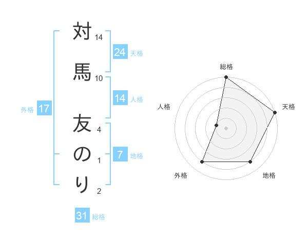 対馬 友のりさんを姓名の画数から五運を鑑定