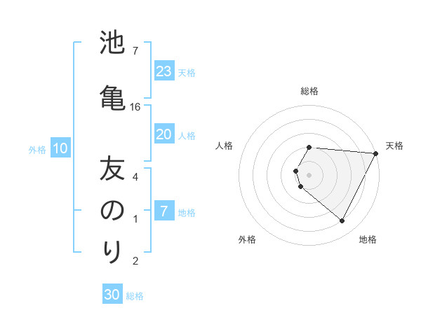 池亀 友のりさんを姓名の画数から五運を鑑定