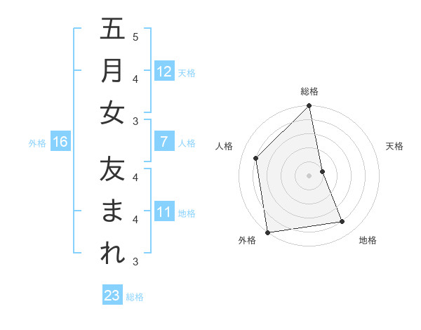 五月女 友まれさんを姓名の画数から五運を鑑定