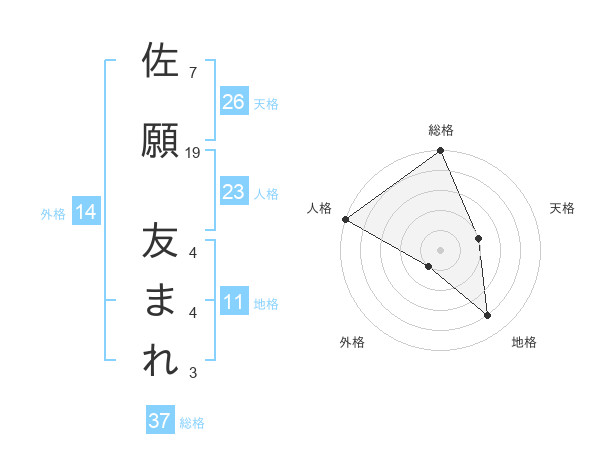 佐願 友まれさんを姓名の画数から五運を鑑定