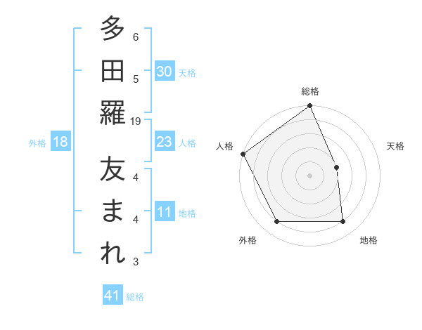 多田羅 友まれさんを姓名の画数から五運を鑑定