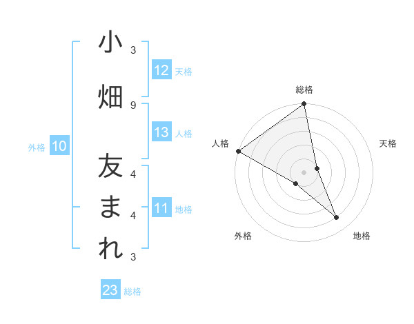小畑 友まれさんを姓名の画数から五運を鑑定