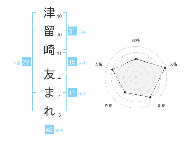 津留崎 友まれさんの天格は31画の5点