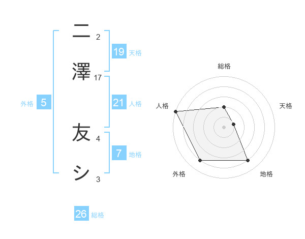 家系が持つ宿命的な運勢を表します。祖先から受け継いだ苗字ですので自分の力が及びません。家柄を象徴します。