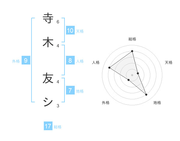 寺木 友シさんの総格は17画の4点!