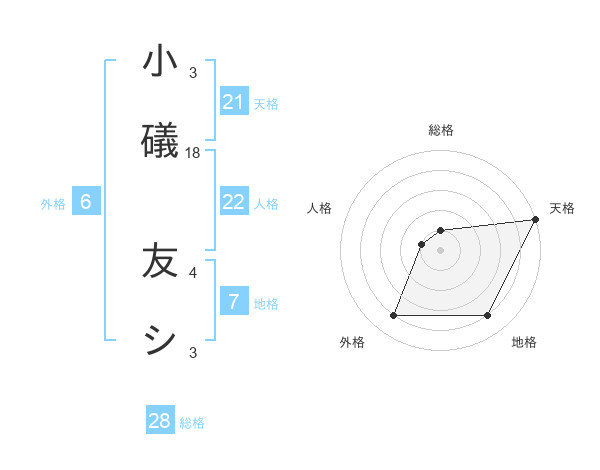 小礒 友シさんの天格は21画の5点!