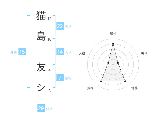 猫島 友シさんの総格は29画の4点!